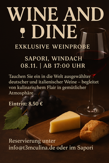 Am 08. November ab 17:00 Uhr laden wir Sie herzlich zu unserer besonderen Weinprobe Wine and Dine im Sapori in Windach ein.